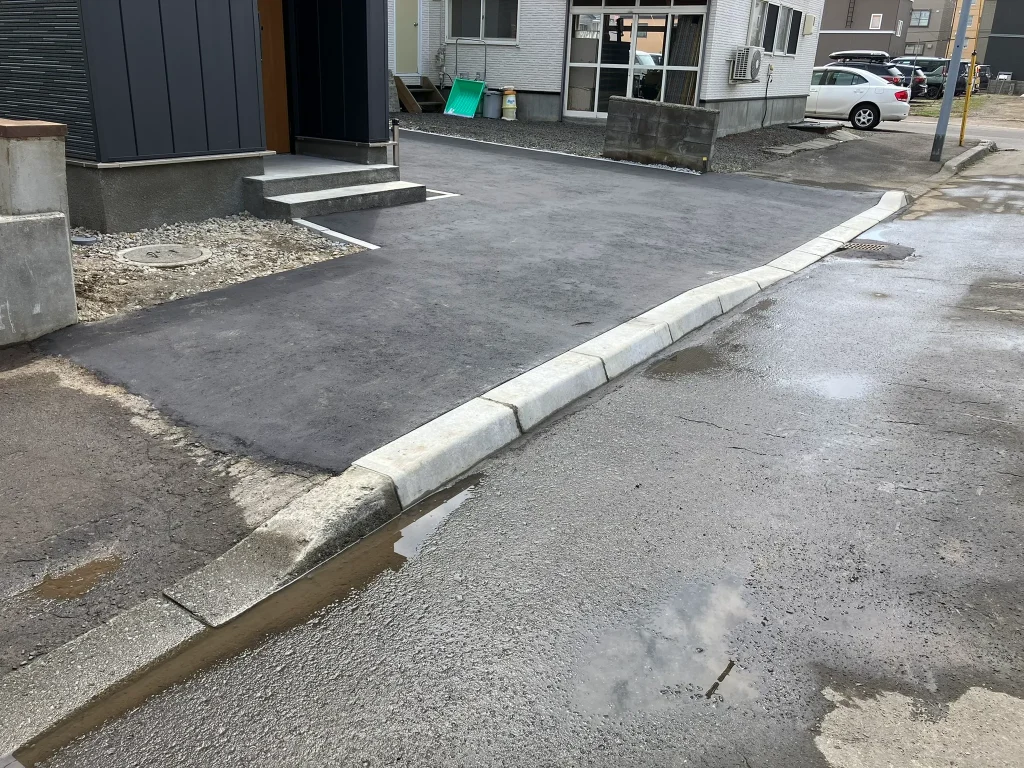 札幌市東区の新築住宅のお客様よりご依頼を受け、アスファルト舗装と歩道の切り下げ工事を行いましたので、施工事例としてご紹介いたします。